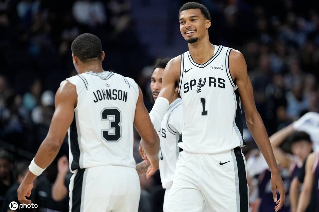 马刺队首发:凯尔登-约翰逊、朱利安-尚帕尼、林迪-沃特斯三世、维克托-文班亚马、哈里森-巴恩斯